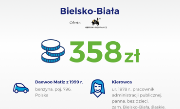 W Częstochowie właściciel najtańszej polisy OC to 51-latka, rozwiedziona, posiadająca więcej niż 2 dzieci, pracująca w biurze. Jeździ Toyotą Yaris z 2014 r. z silnikiem benzynowym o pojemności 998 cm³. Dodatkowo, wypracowała 60% zniżek za bezszkodową jazdę.