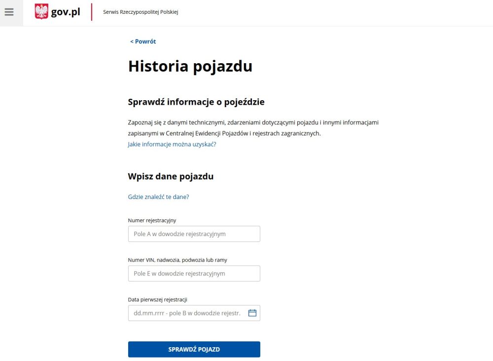 - Przejdź na stronę www.historiapojazdu.gov.pl