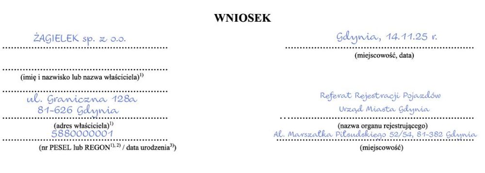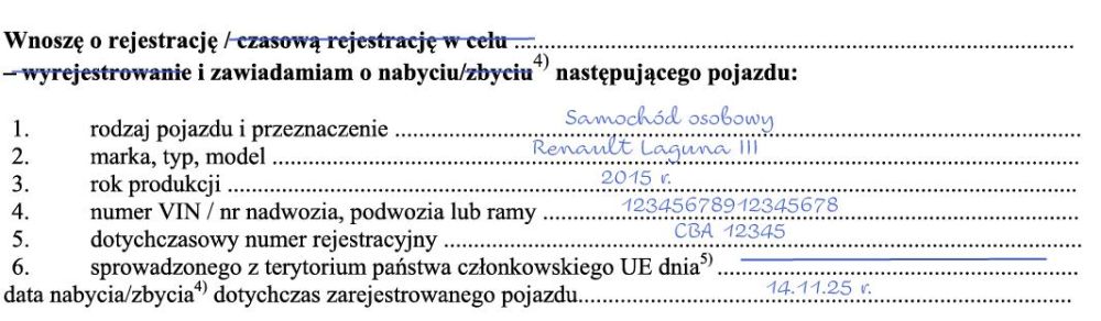 2. Wypełnienie wniosku o rejestrację pojazdu