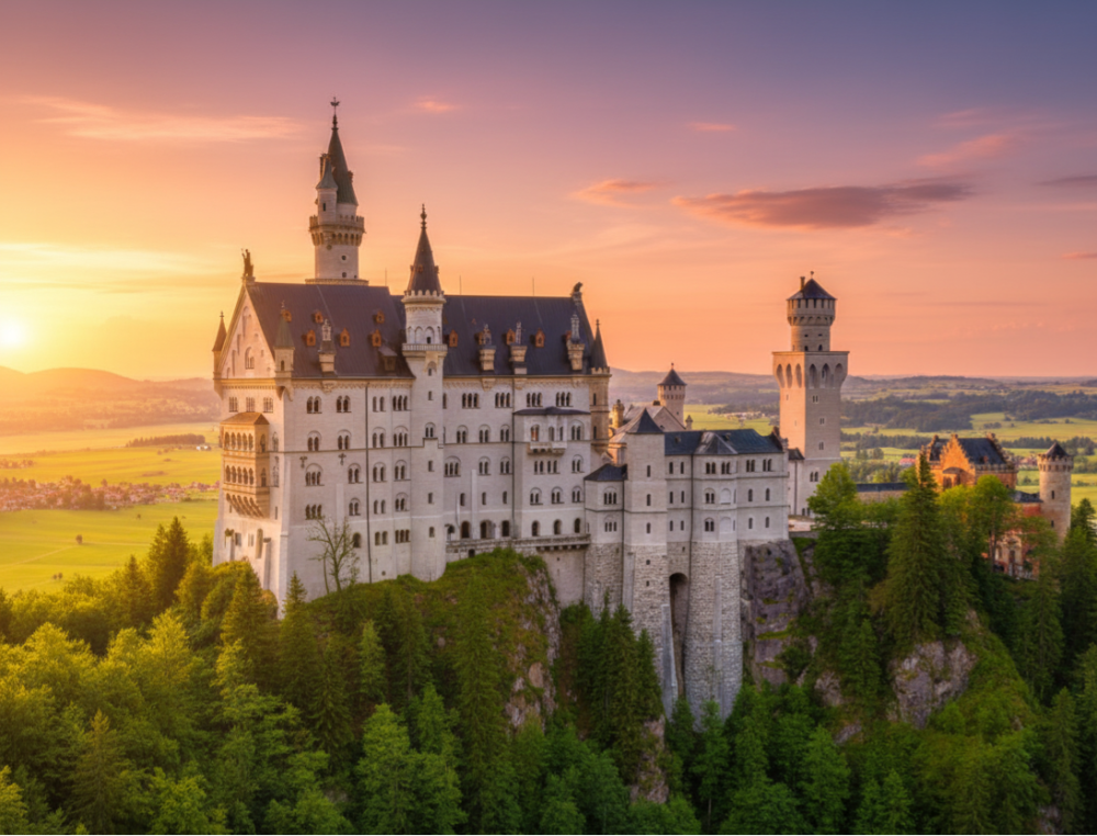 Zamek Neuschwanstein to unikalna budowla z XIX wieku, której sekret tkwi w malowniczym położeniu na tle zjawiskowych Alp Bawarskich. W przeszłości pełnił on funkcję prywatnej rezydencji króla Bawarii, Ludwika II Wittelsbacha. Obecnie istnieje możliwość zwiedzania zamku za darmo, w obrębie dziedzińca, i odpłatnie, z uwzględnieniem pomieszczeń i sal królewskich. Oglądanie wnętrza odbywa się wyłącznie z przewodnikiem.