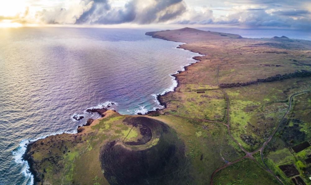- Wulkan Rano Raraku – wulkaniczny krater, który pełnił funkcję fabryki moai – to właśnie z niego wydobywano skały do produkcji posągów. Wykonano w nim 397 figur, z czego 20 z nich stoi, a reszta leży zatopiona w trawie lub w zboczach krateru.
